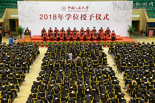 6月27日上午,中國人民大學2018年博士學位授予儀式在世紀館舉行,802人獲授博士學位。