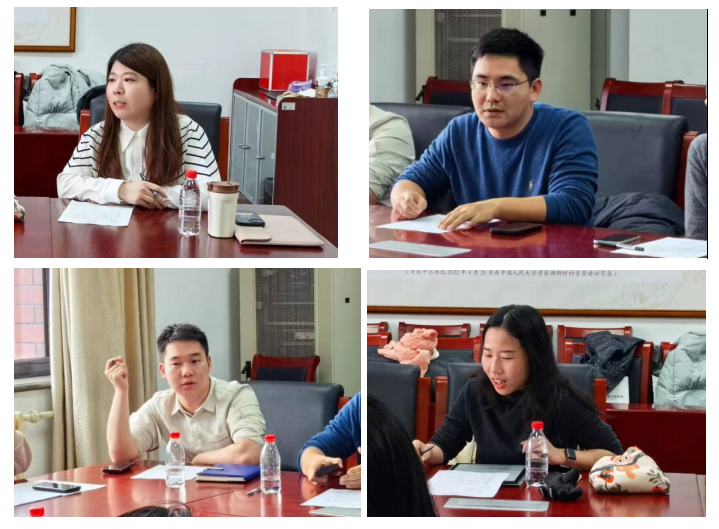八位青年教師代表具有于耶魯大學、牛津大學、劍橋大學等全球頂尖院校求學經歷,各自結合海外院校研究生培養特點與我校實際,為我校推動研究生教育改革提出寶貴建議。外國語學院教師楊濱瑜、應用經濟學院教師郭伯威、法學院教師彭雅麗從課堂教學形態、學分體系和教育教學評價機制等角度展開改革提議。國際關系學院教師王召東、商學院教師趙大旋、統計學院教師梅好在課程容量、學術型與專業學位碩士培養體系和教學軟硬件條件升級等方面發表意見建議。心理學系教師陳曉晨和高瓴人工智能學院教師周驍圍繞教學理念與助教助研工作改革與大家展開討論。